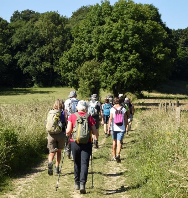 Wandelaars door de velden.