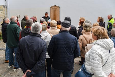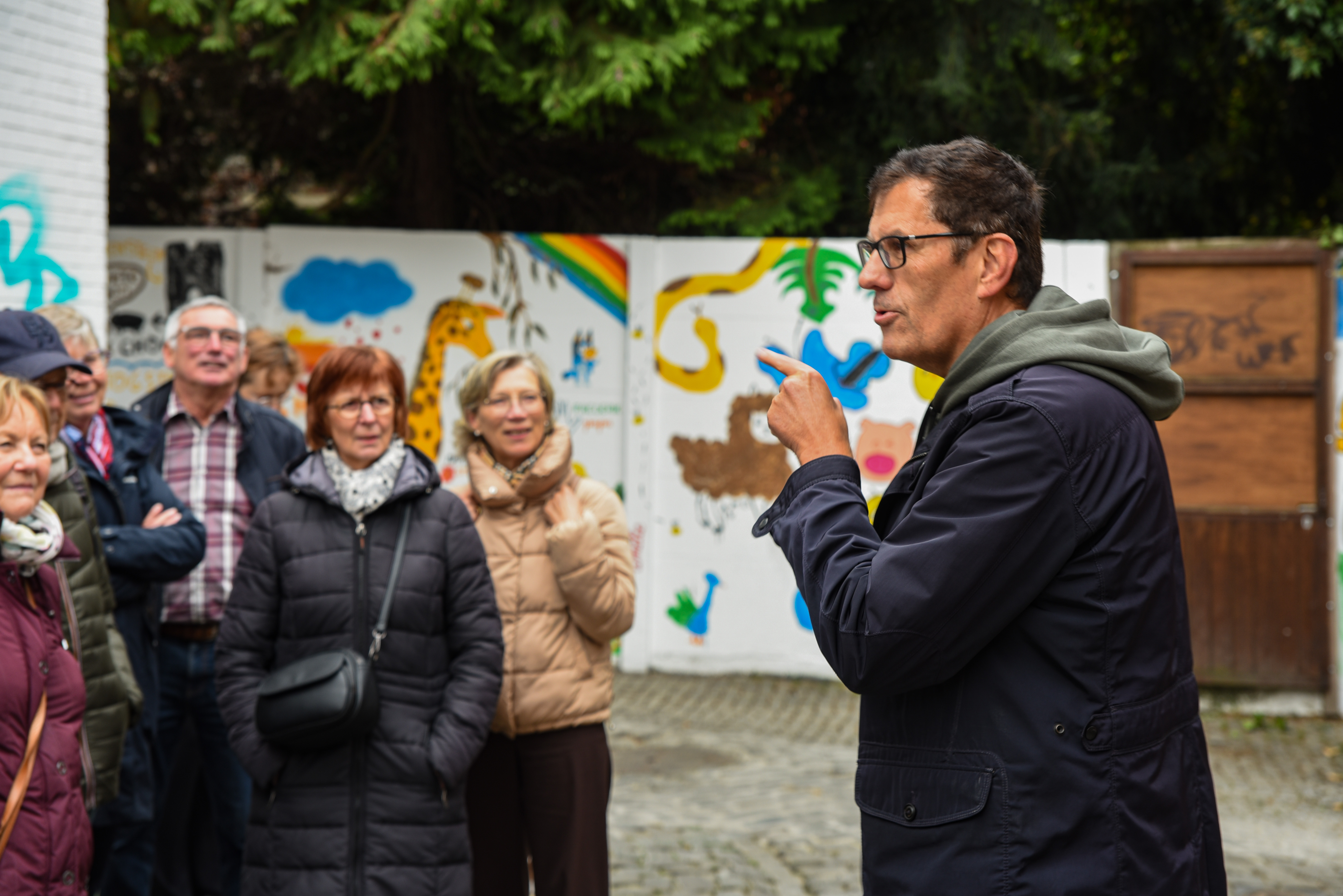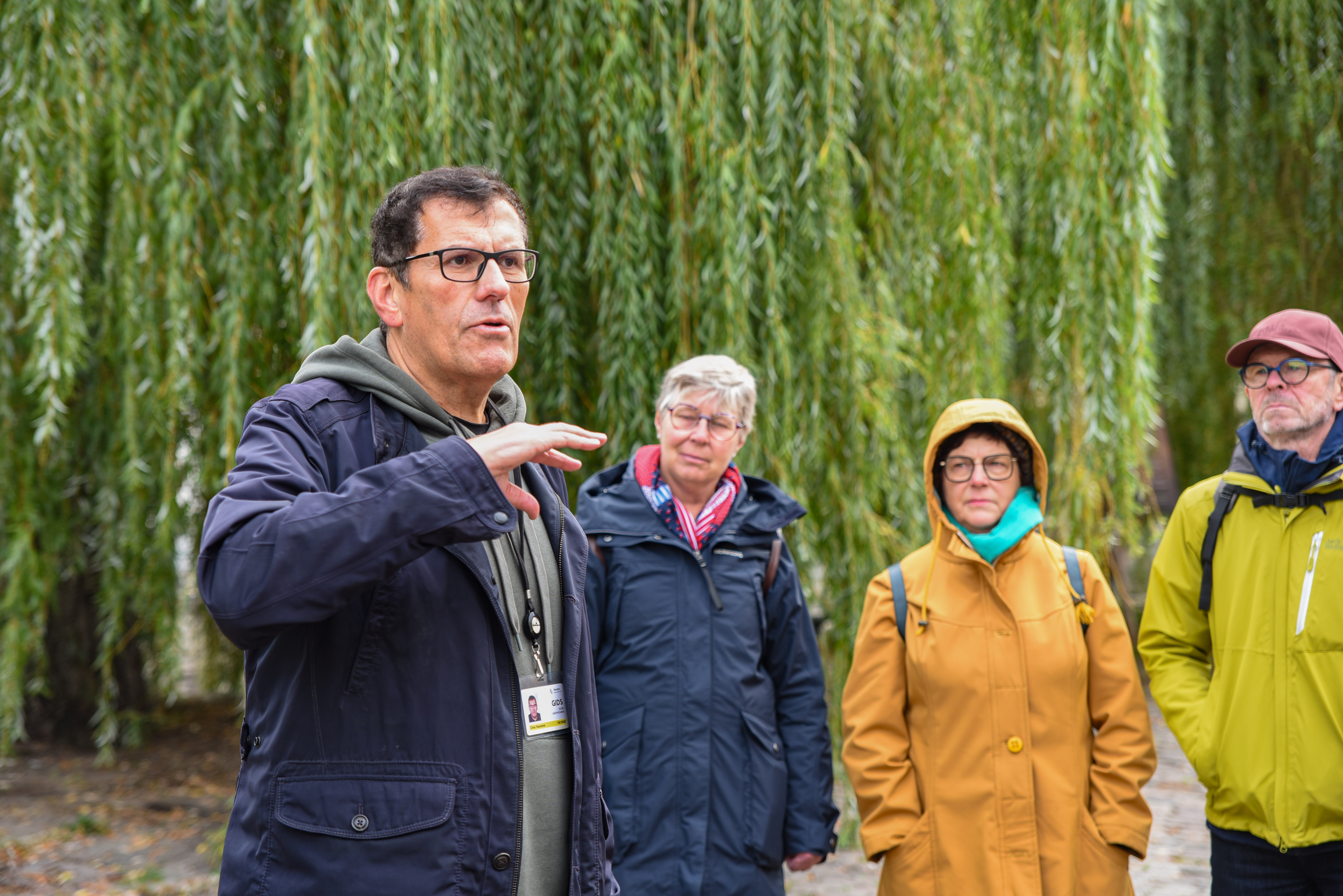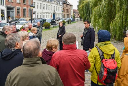 Stadsgids Chris vertelt er ons alles over tijdens deze boeiende uiteenzetting.
