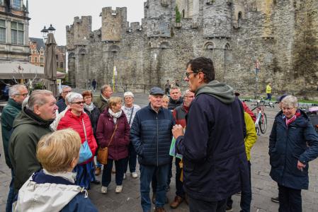 We komen een en ander te weten tijdens deze rondleiding in het historische Gent.