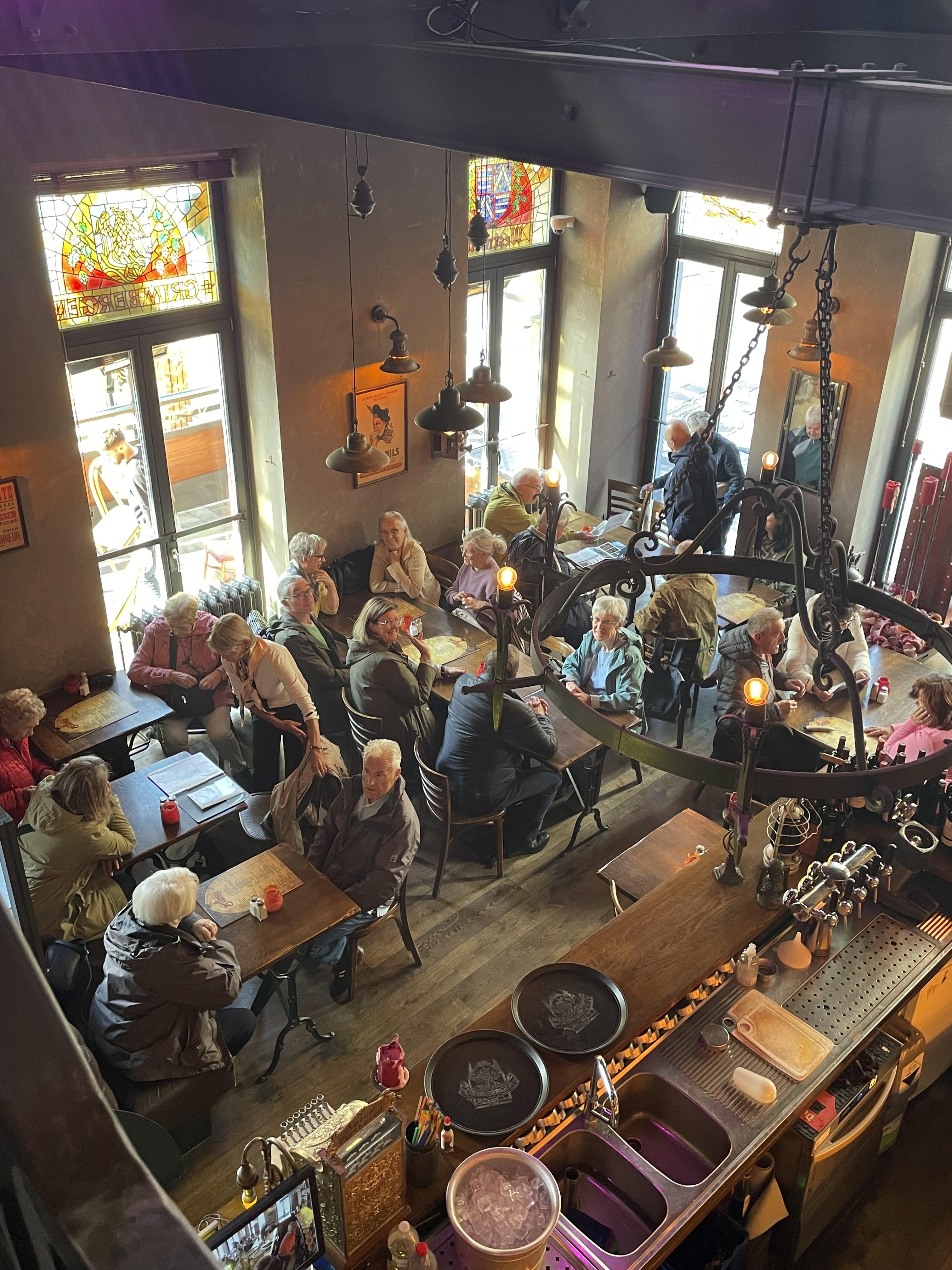 - Afsluiting: Voor de terugreis naar Liedekerke konden we nog genieten van een verfrissend drankje in het gezellige café Toone (gekend van het poppentheater), vlak bij het Centraal Station.