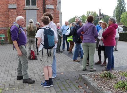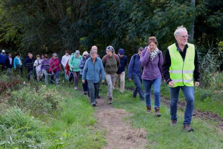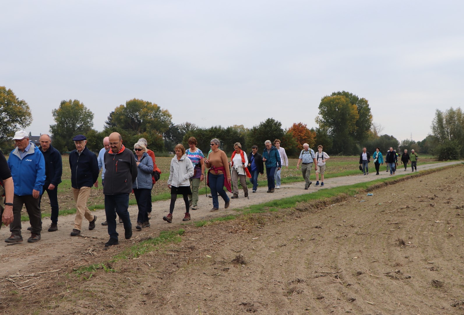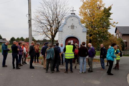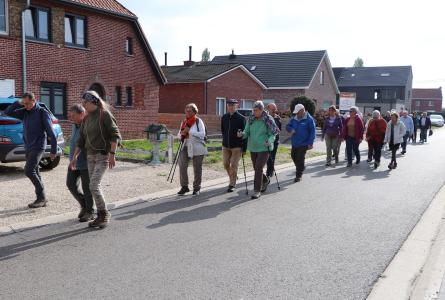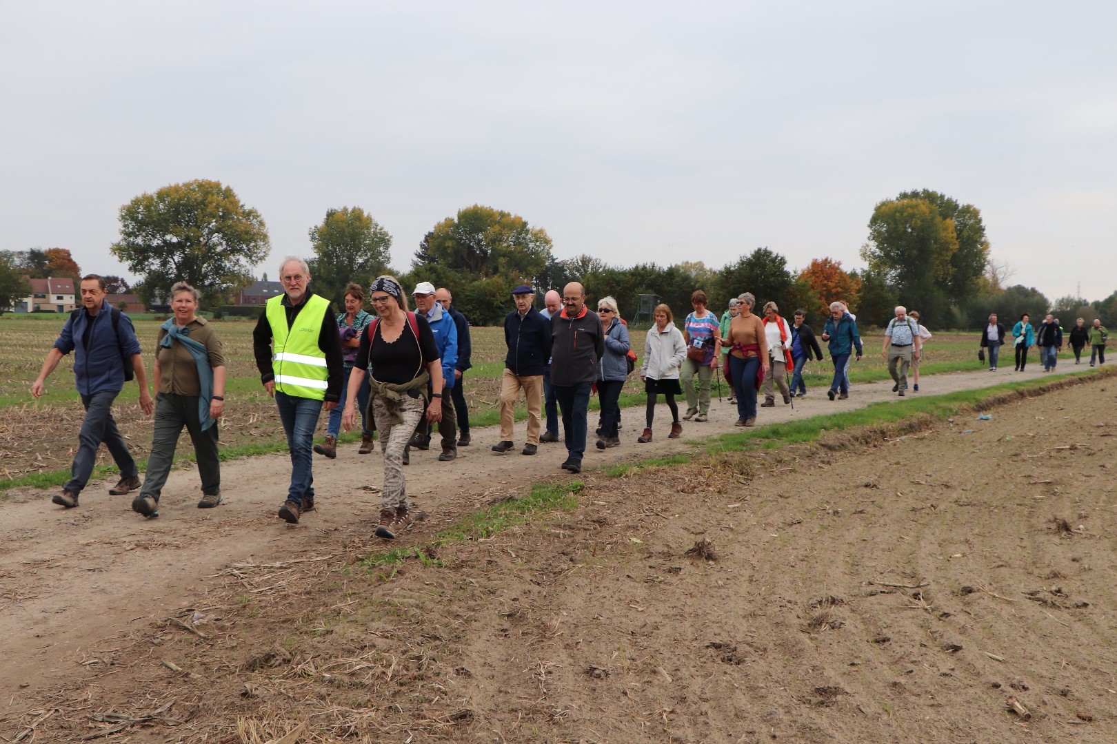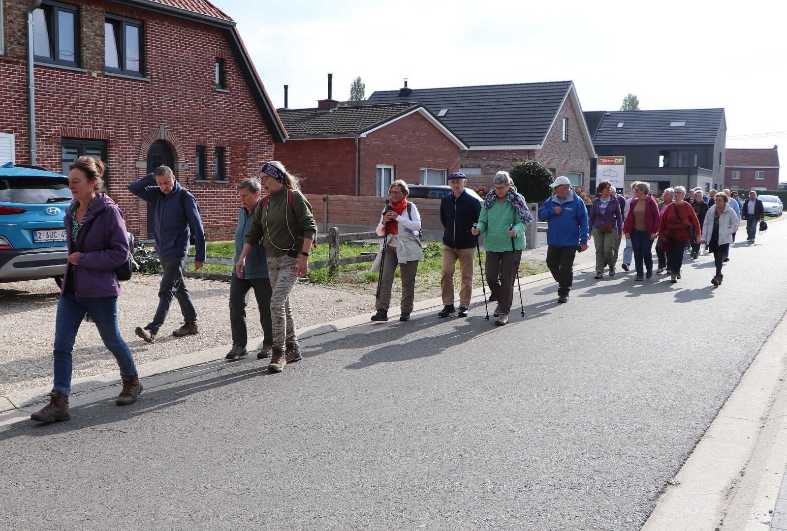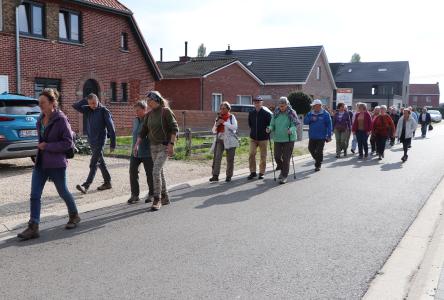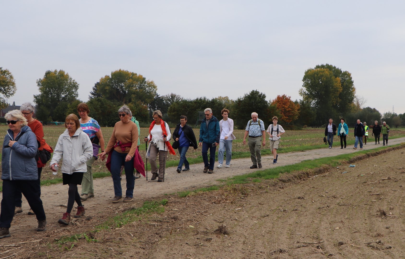 De wandeling is 8 km lang. Op deze wandeling kan er geen drank/sanitaire stop voorzien worden.