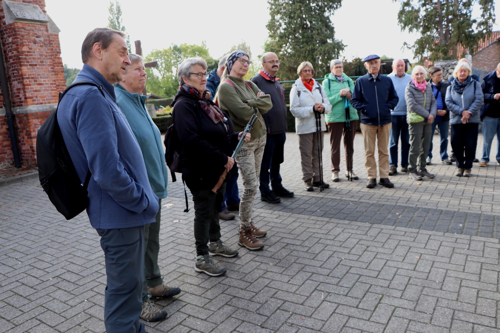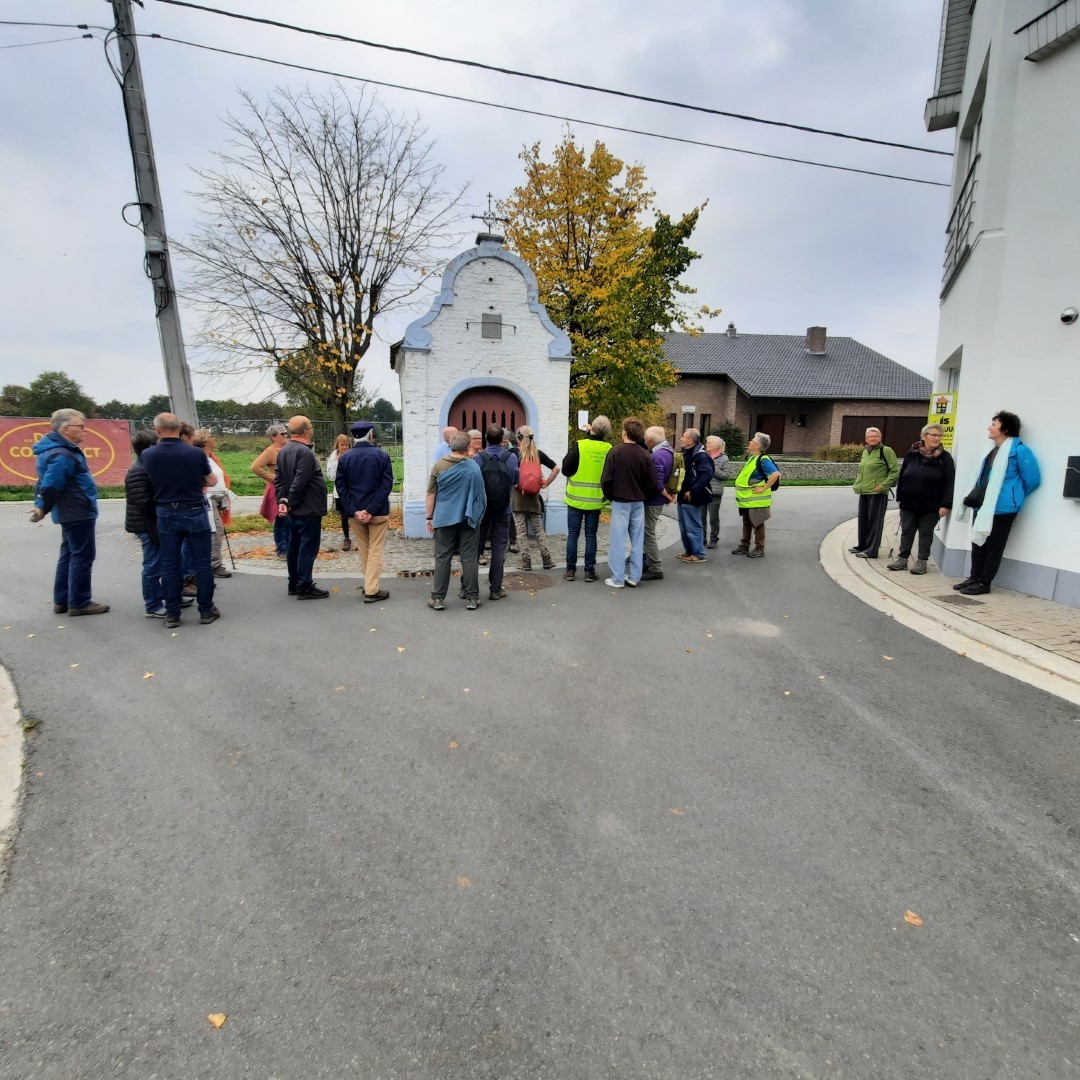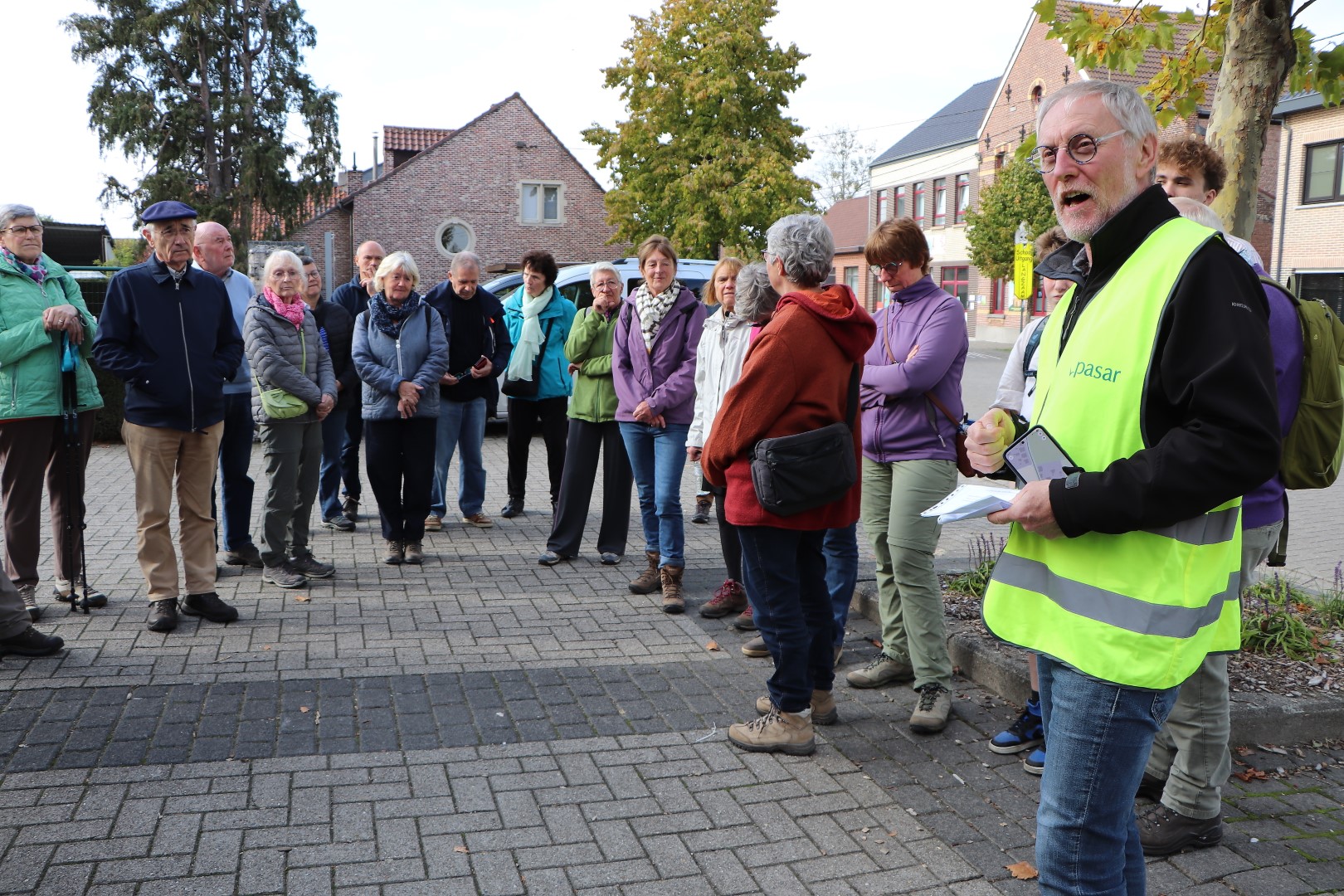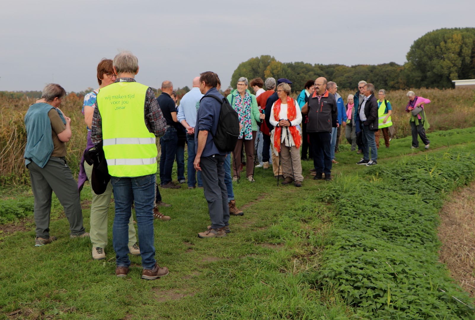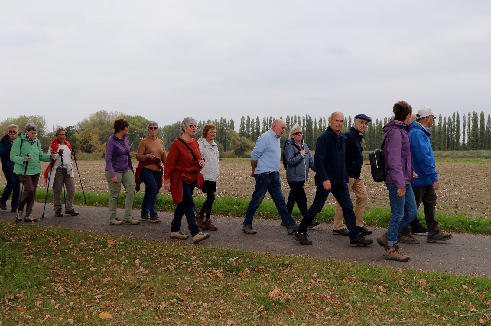 De wandeling is 8 km lang. Op deze wandeling kan er geen drank/sanitaire stop voorzien worden.