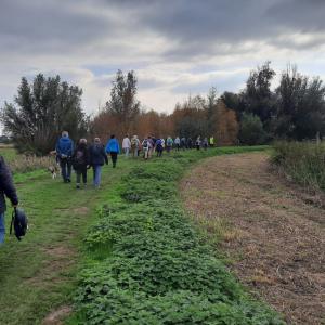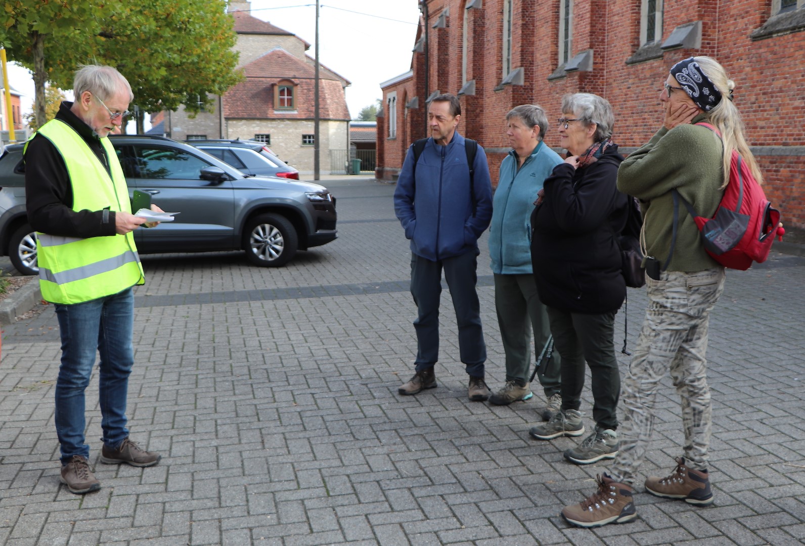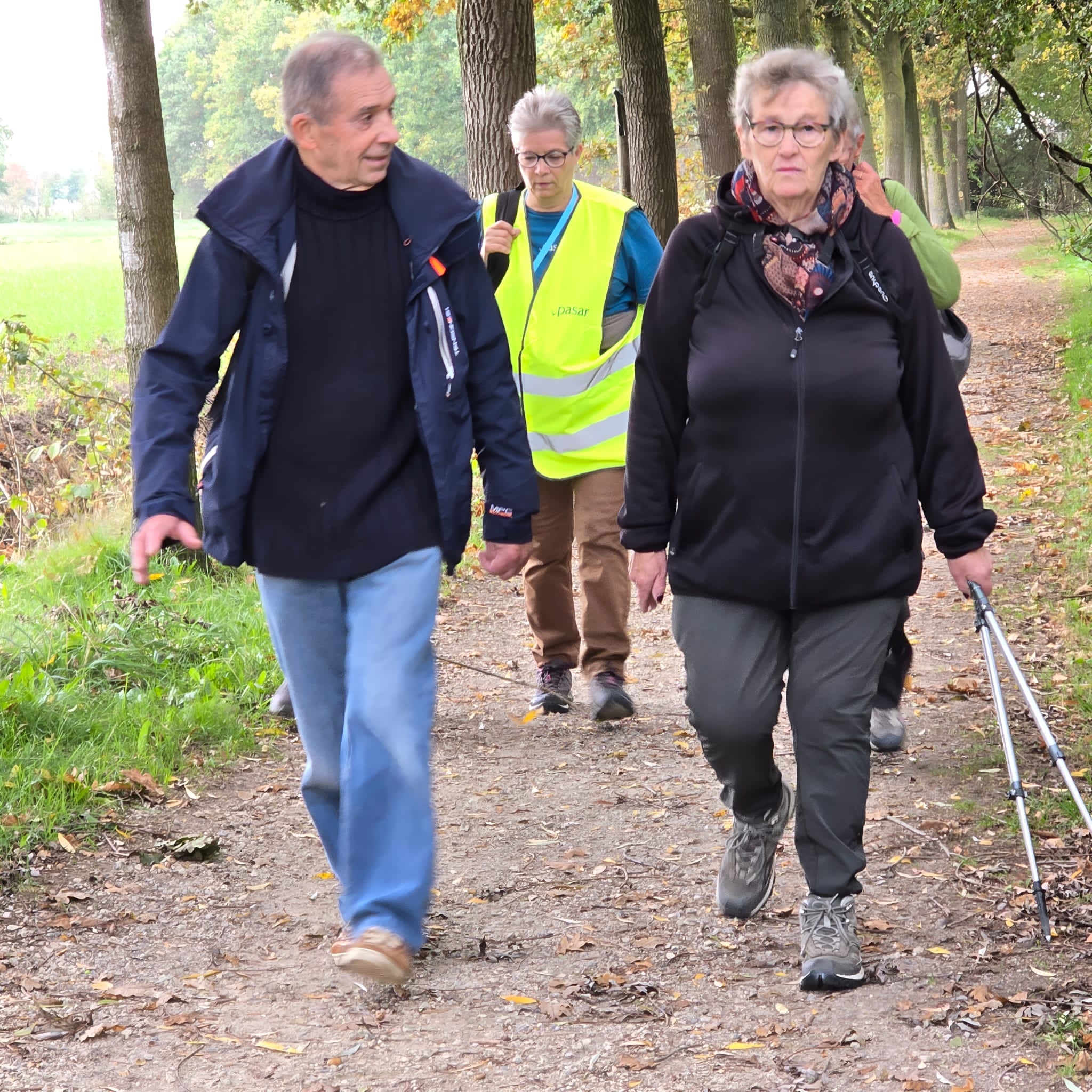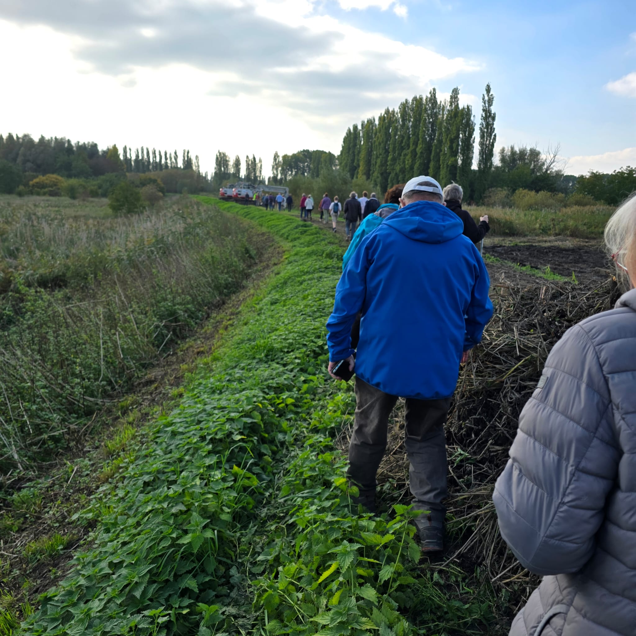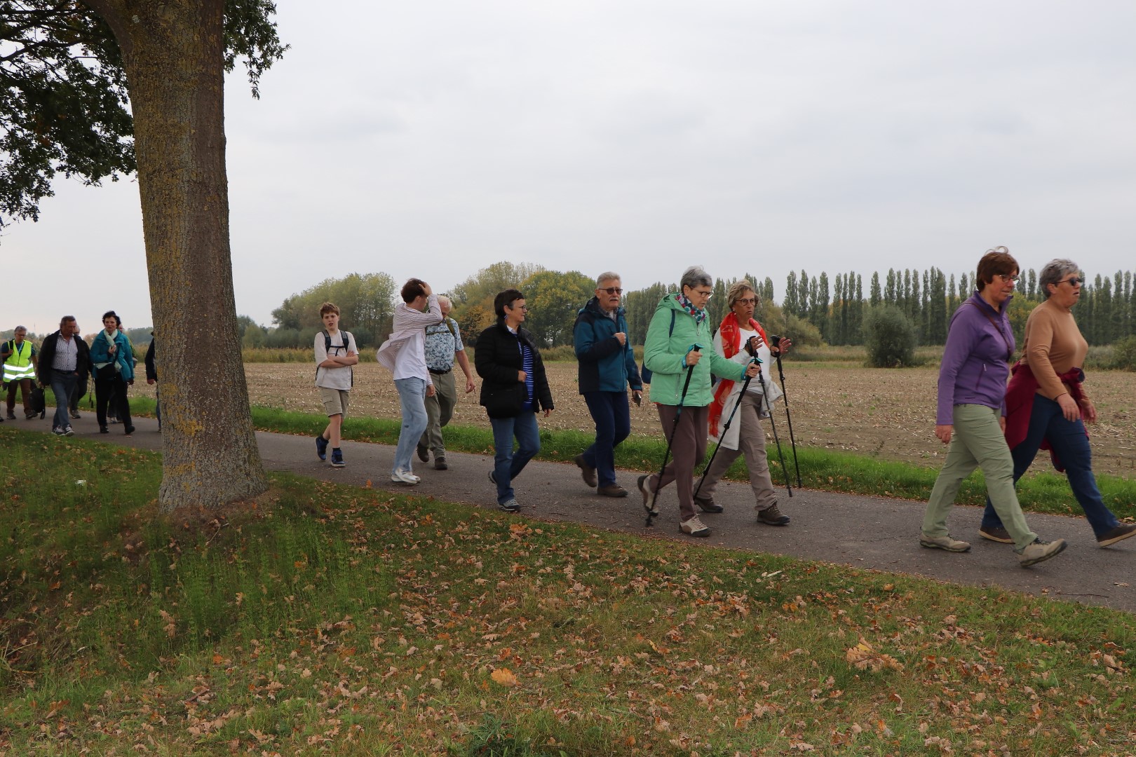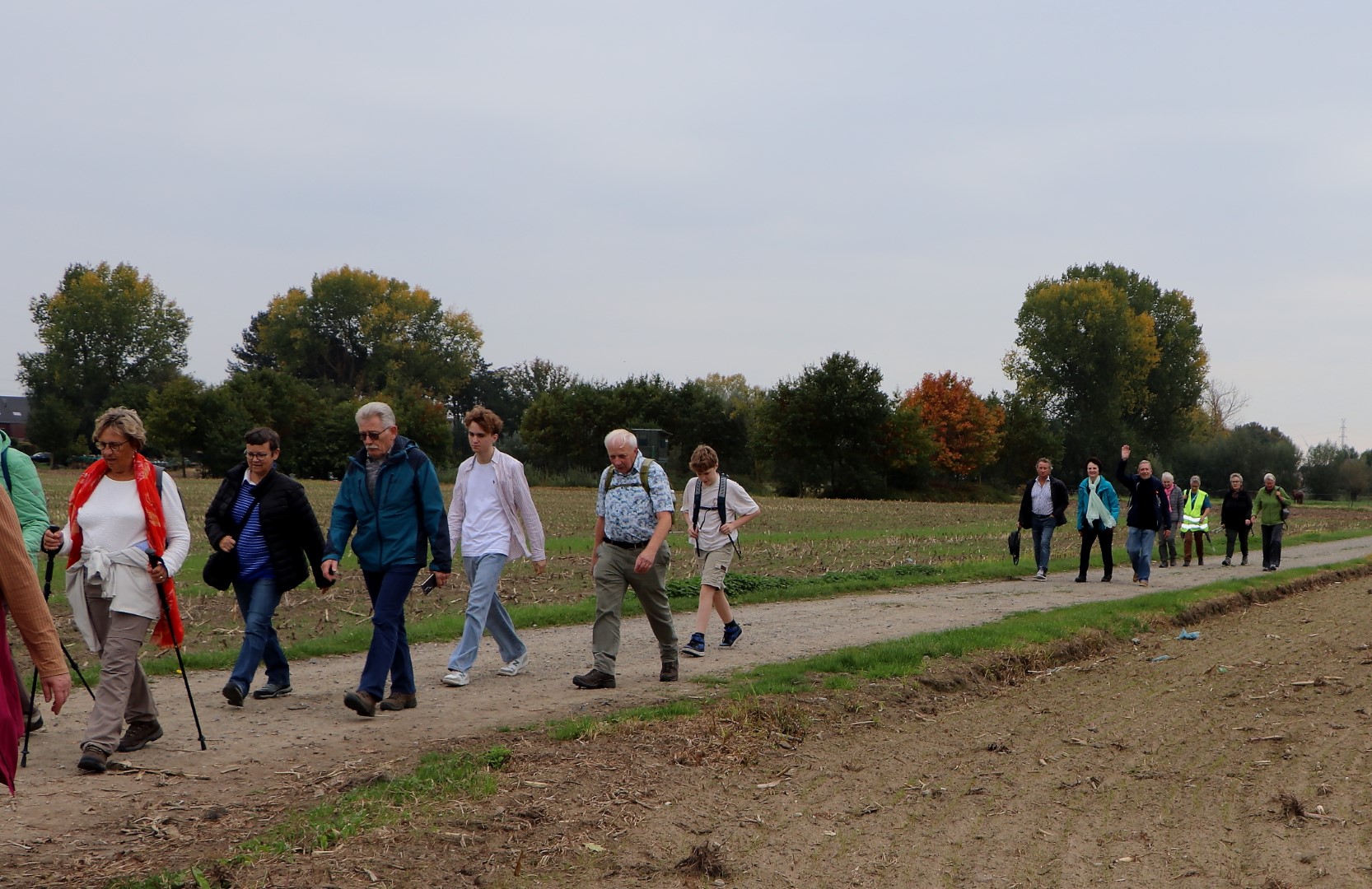 De wandeling is 8 km lang. Op deze wandeling kan er geen drank/sanitaire stop voorzien worden.