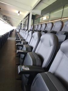het terrein en begeven we ons naar boven om de VIP ruimtes te bezoeken. Daarna gaan