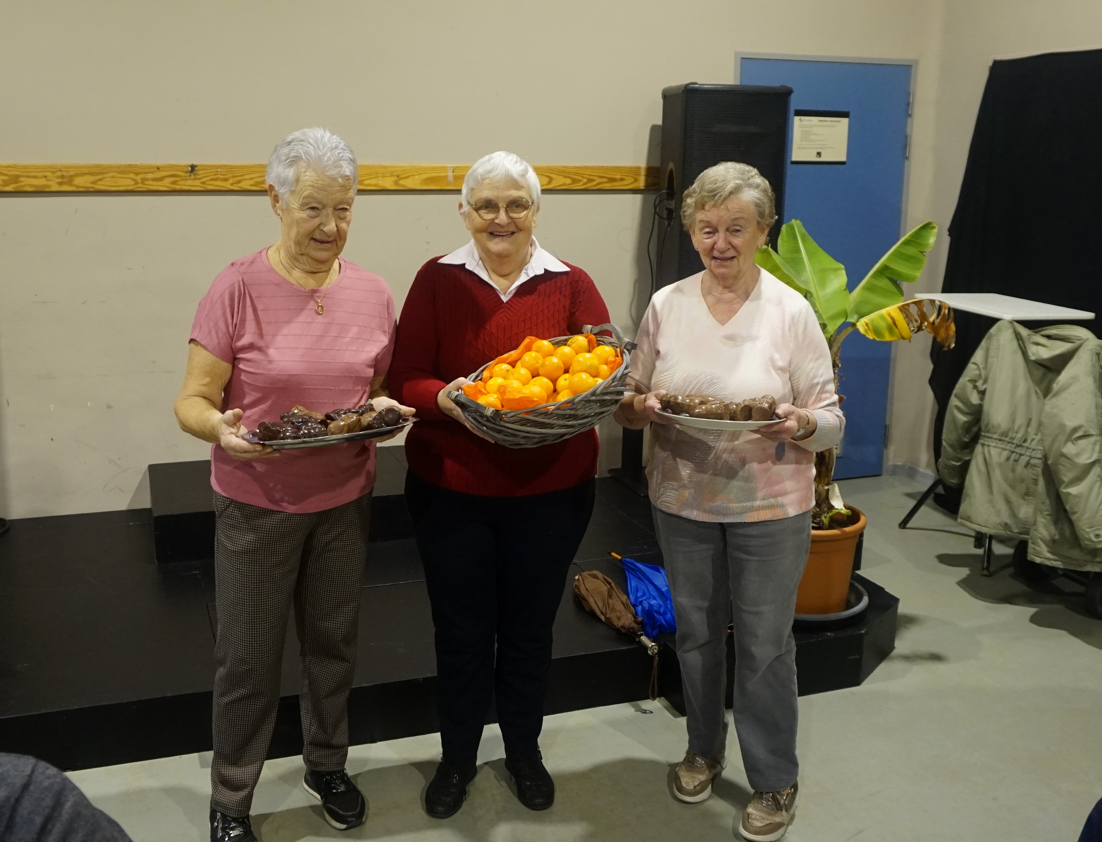 chocolade melk en een chocolade postuurtje en mandarijntje. Ook niet wandelaars zijn welkom.