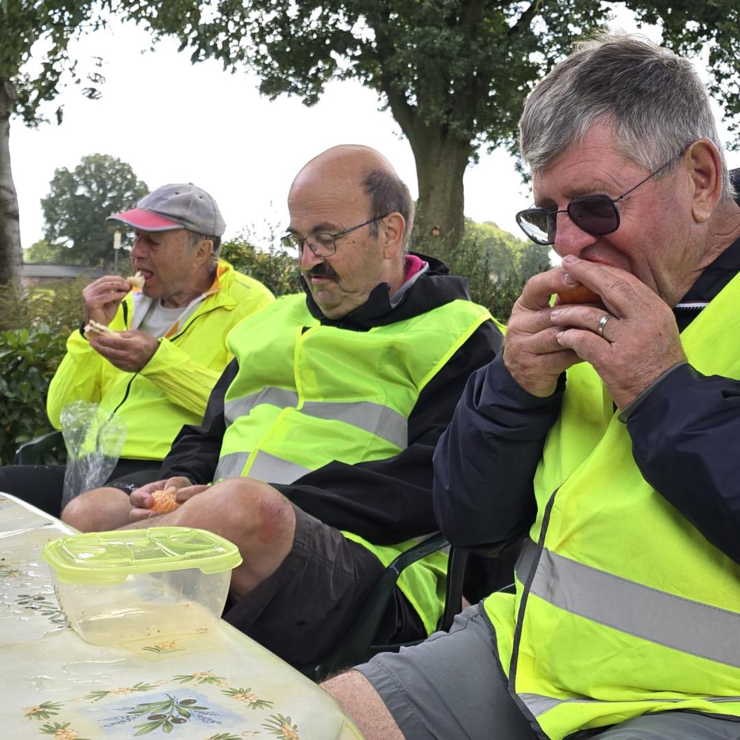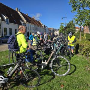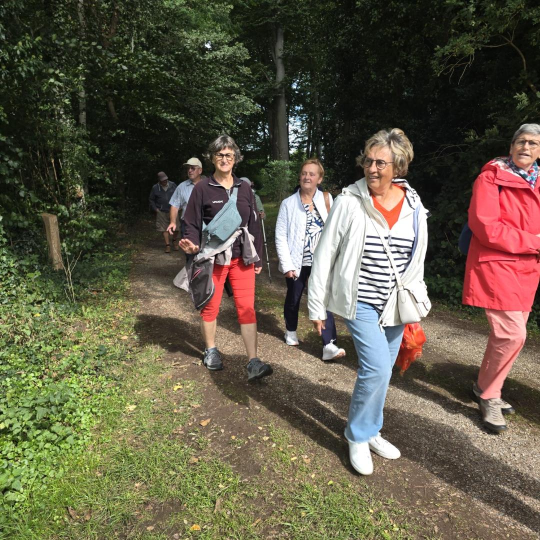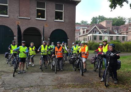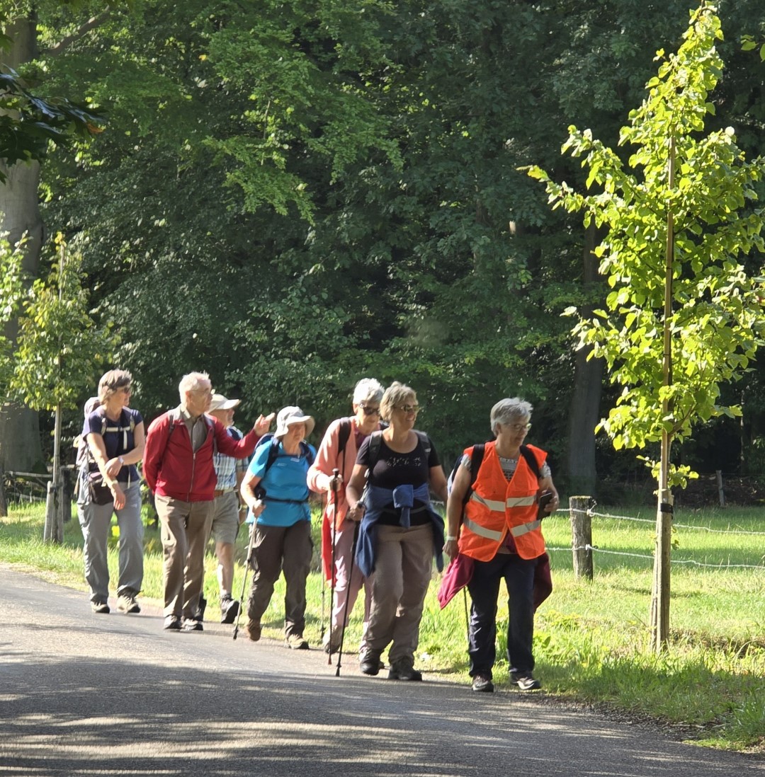 Foto's van deelnemers aan de wandelingen en fietsers.