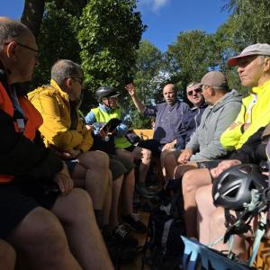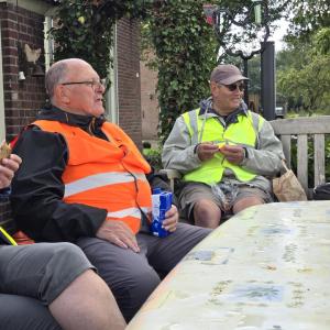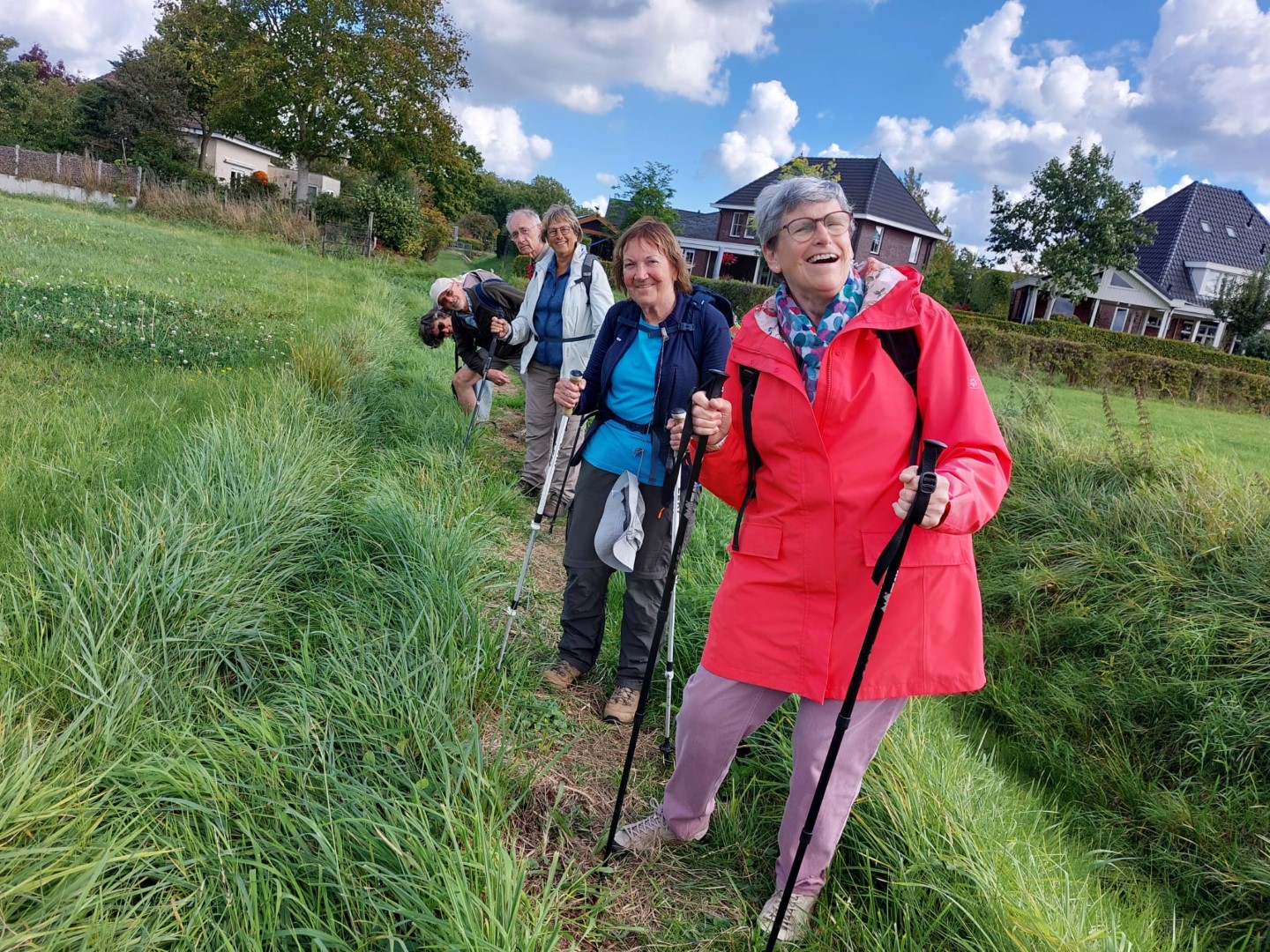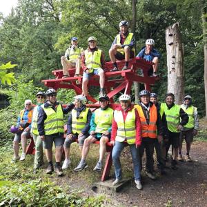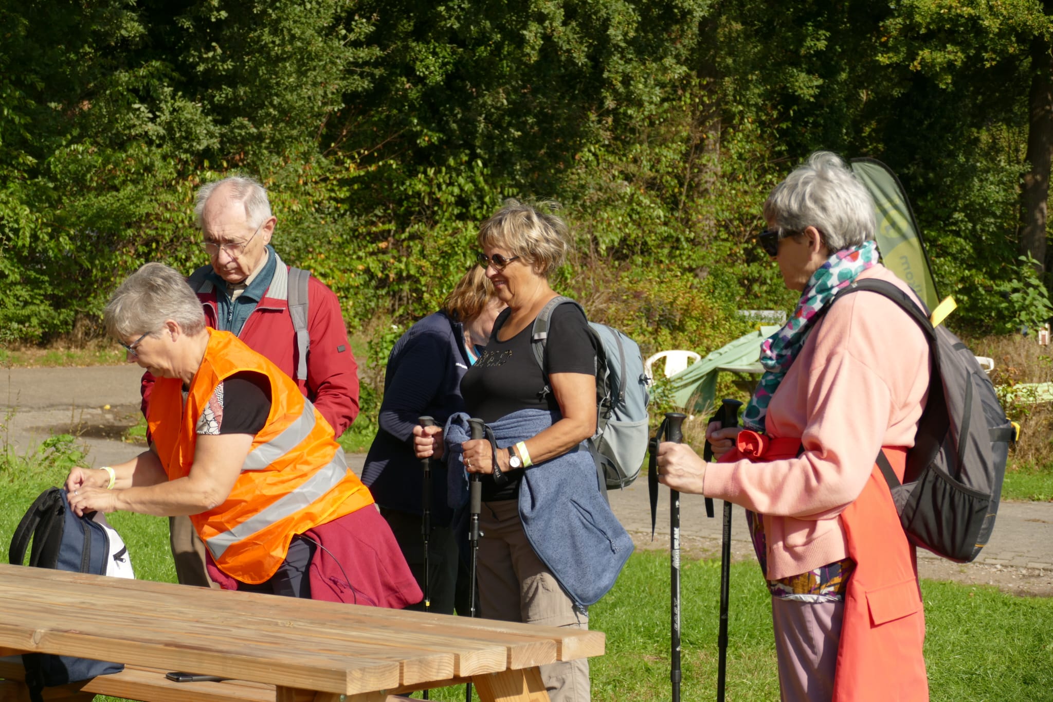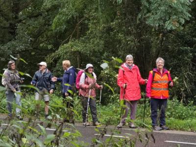 Foto's van deelnemers aan de wandelingen en fietsers.