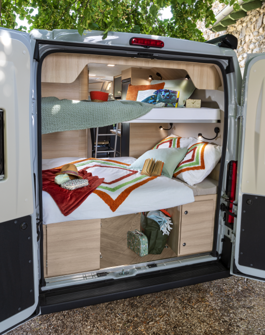 Optionele Isofix-zitplaatsen zijn beschikbaar in de zithoek. De badkamer biedt meer bergruimte en een geïntegreerde handdoekrail. De V114 en V114M kregen ruimer bemeten bedden voor extra slaapcomfort. Alle buscampers zijn nu verkrijgbaar op Fiat (140 pk) of Citroën (120 pk) en hebben een grotere keuken met 84-liter koelkast, bredere doorgang en diepere bovenkasten.