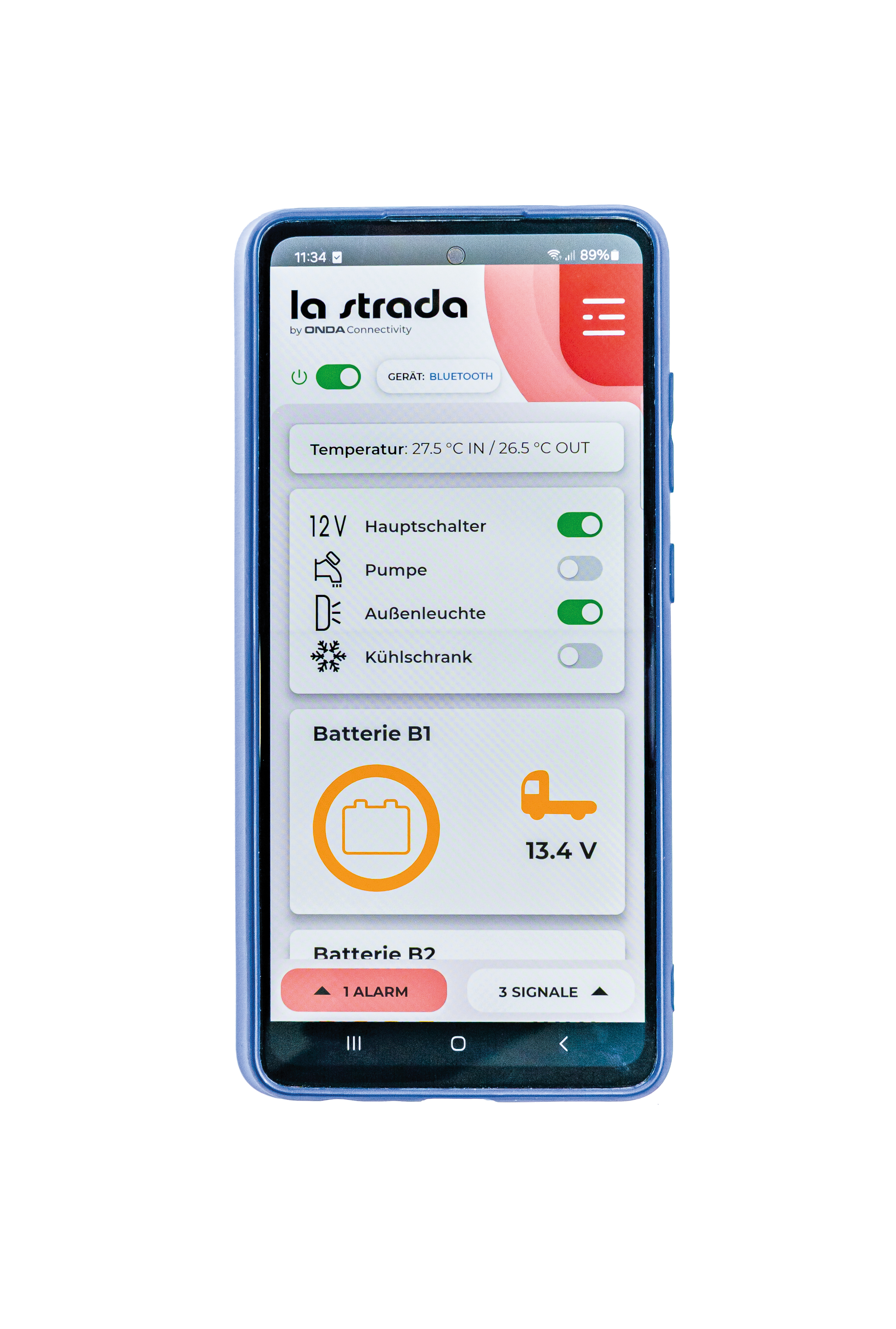 In de standaardversie gebeurt dat via Bluetooth binnen een straal van circa 10 tot 15 meter rond het voertuig, terwijl de optionele Pro-versie bediening en monitoring vanop afstand mogelijk maakt via een internetverbinding. Deze uitgebreidere variant biedt bovendien GPS-tracking, wat het lokaliseren en terugvinden van het voertuig vergemakkelijkt bij diefstal. Het systeem integreert alle elektronische opties uit de accessoirelijst, van batterijen en zonnepanelen tot routers en verwarmingssystemen.