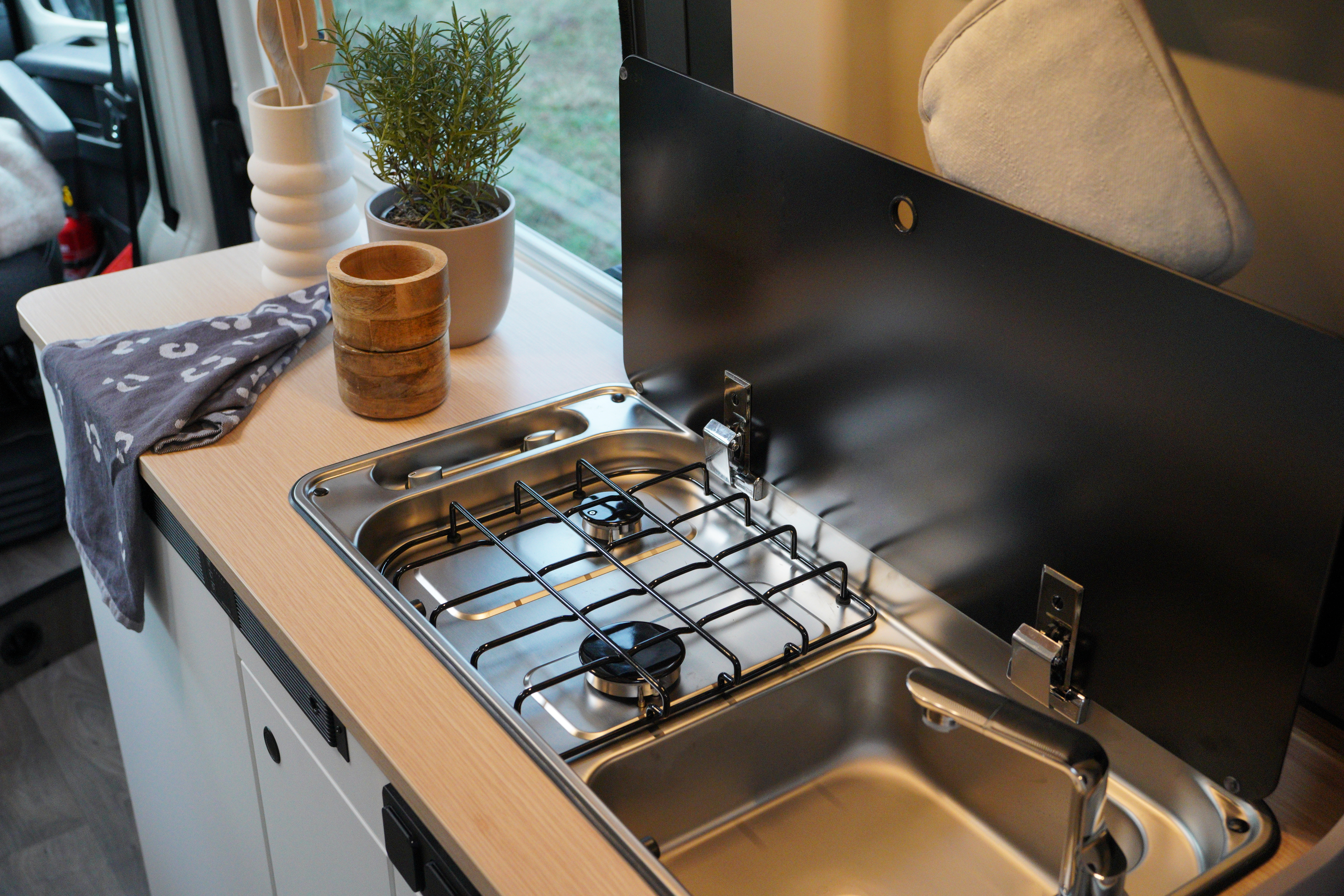 Veiligheidsvoorzieningen zoals een bandenreparatieset, rookmelder en parkeersensoren zijn standaard aanwezig. De camper kan verder worden uitgebreid met optiepakketten die gericht zijn op extra comfort of extra veiligheid.