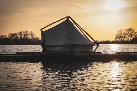 Lakebossen 4, Oostkamp (Ruddervoorde), www.boomkamp.be. Nieuw dit jaar zijn de drijvende tenten van het Vlotkamp.