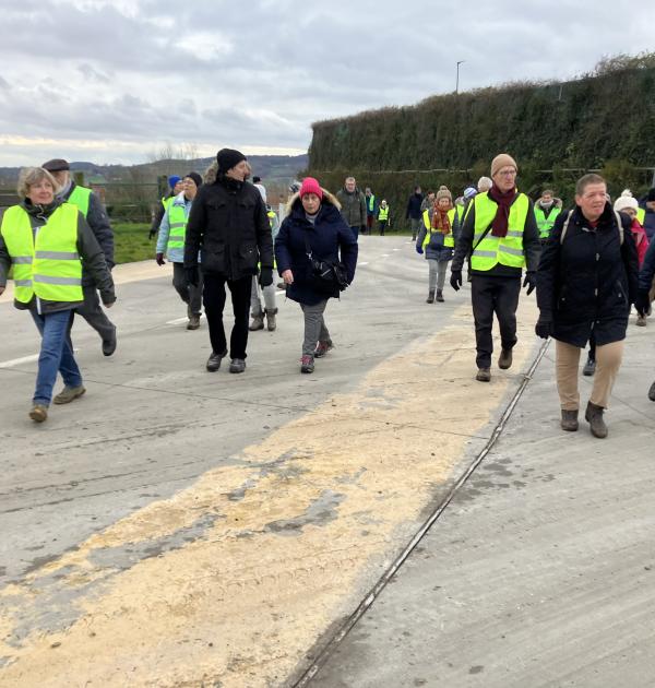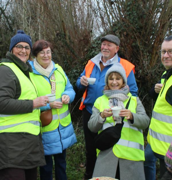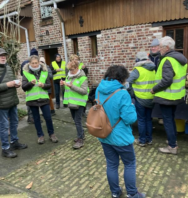 Op de foto vlnr Mariette Hoorelbeke, Francis Decaesteker, Antoon Verstraete, Monique Behaeghel, Carine Alleweireldt, Brigitte Bertier, Joseph Van Ostaeyen.