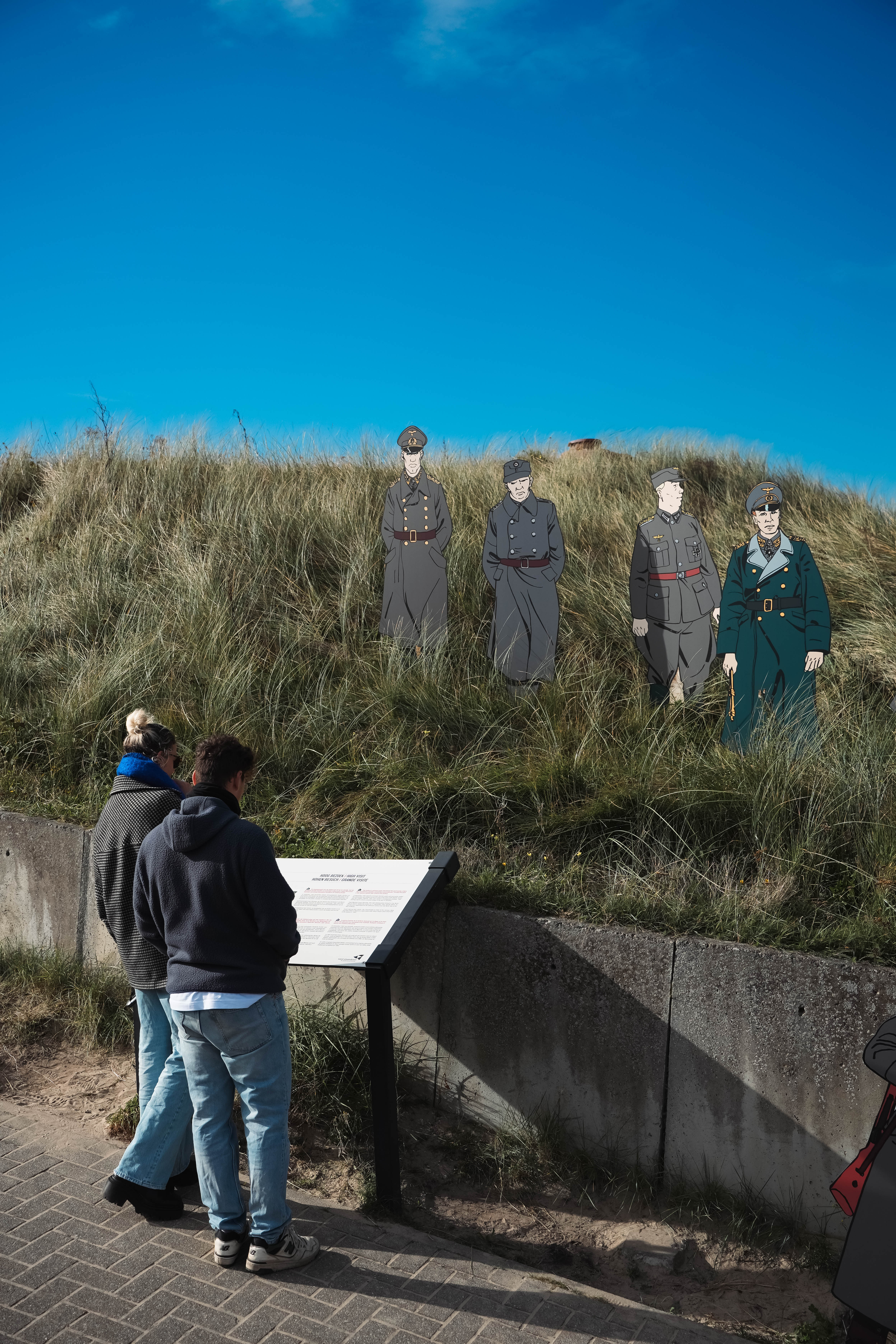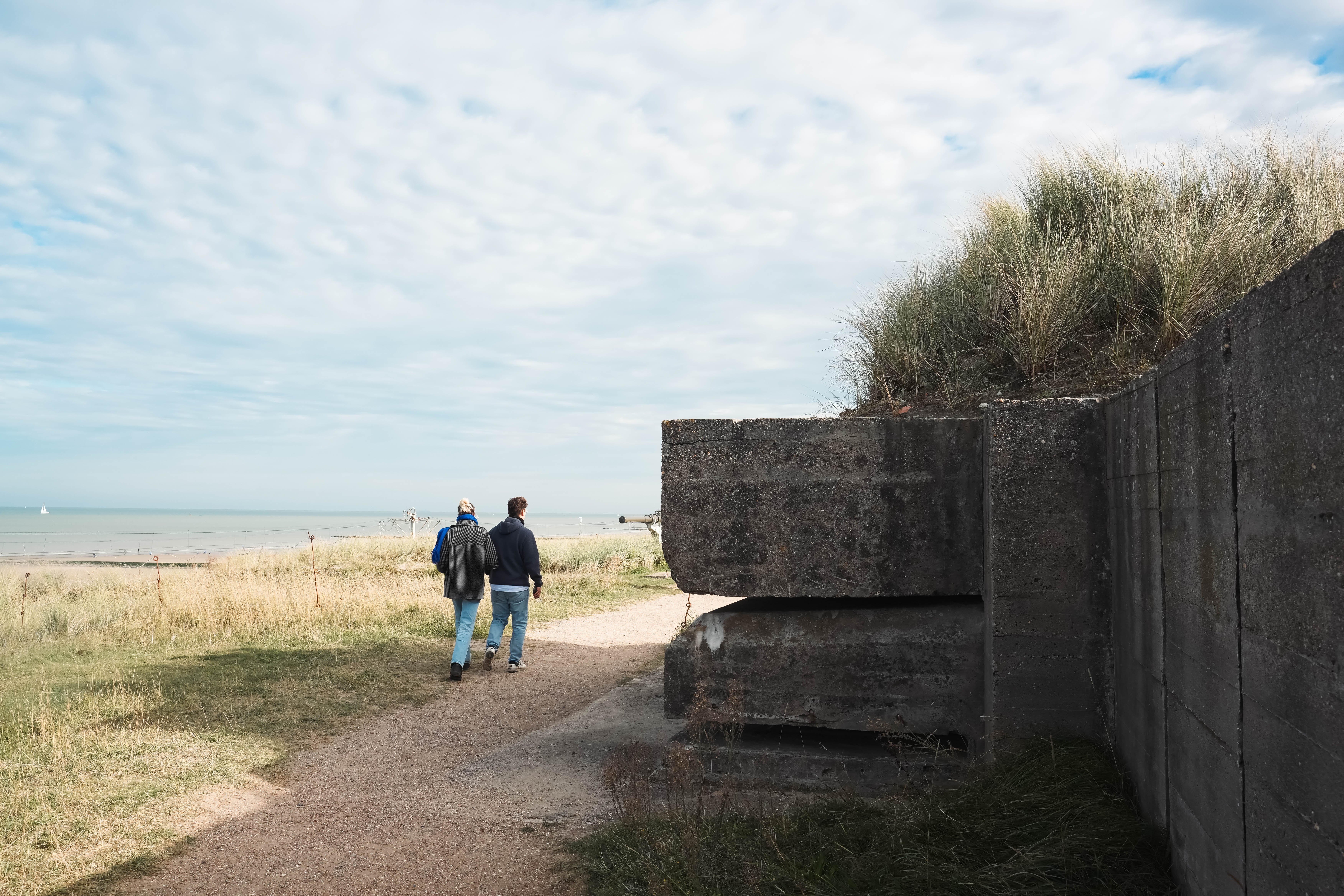 Na een stevig ontbijt maken we ons klaar voor de volgende stop op onze trip: Atlantikwall Raversyde in Oostende. In dit openluchtmuseum zetten we de stap naar de andere zijde van de oorlog, die van de Duitse bezetter. De site herbergt zowel Batterij Aachen uit WOI als Batterij Saltzwedel-neu uit WOII, goed voor meer dan zestig bunkers, observatieposten en geschutsopstellingen verspreid over een indrukwekkend duinenlandschap. Het volledige bezoek neemt zo’n twee uur in beslag en vergt flink wat stappen – stevige schoenen zijn geen overbodige luxe. De ingang van het domein is op het moment van ons bezoek onderhevig aan ingrijpende werken (aan ANNO 1465, een aanpalende Middeleeuwse archeologische site), toch begint het bezoek verrassend huiselijk, met de bescheiden mandenvlechterswoning waar Prins Karel, regent van België tussen 1944 en 1950 na de démarches van zijn broer tijdens WOII, zijn intrek nam. Via de audiogids leren we dat beide oorlogsbatterijen tot vandaag bewaard zijn gebleven omdat prins Karel zich als eigenaar van de gronden heel zijn leven tegen de afbraak heeft verzet.