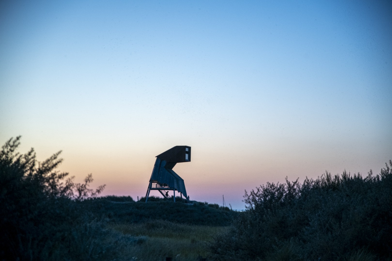 De uitkijktoren De Steltloper staat als een baken te glinsteren in de zon op het hoogste punt van het eiland en we worden erdoor aangetrokken als bijen tot een pot honing. Onderweg spelen baardmannetjes verstoppertje in het riet, ze wippen met tientallen tegelijk tevoorschijn om zich weer te verschansen zodra de camera tevoorschijn komt. Boven op de uitkijktoren worden we getrakteerd op een weergaloos uitzicht. Het eiland lijkt bij aankomst klein, maar van op 12 meter hoogte zien we pas hoe uitgestrekt het natuurgebied is.