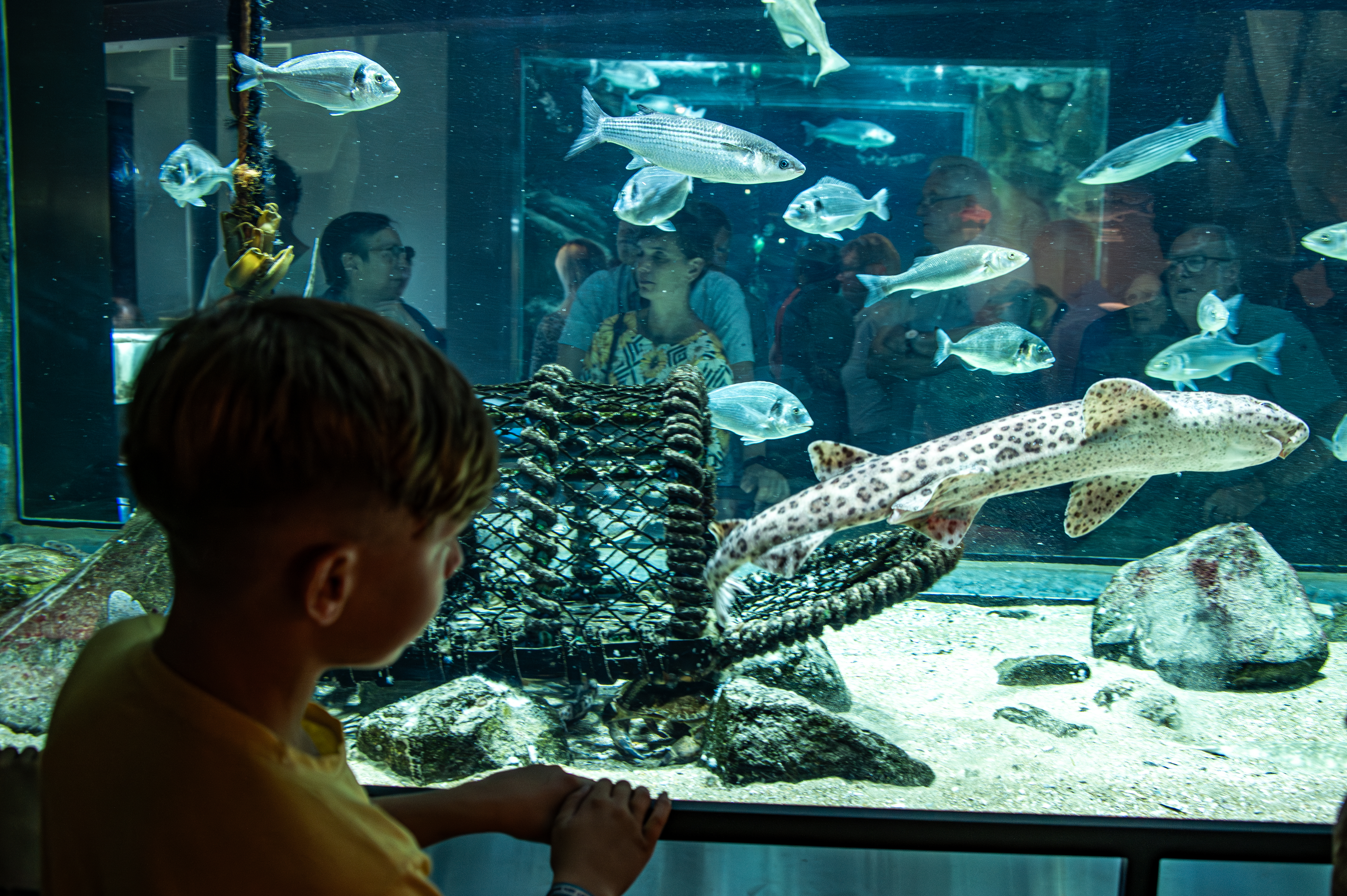 We dalen af tot onder de zeespiegel. In deze onderwaterwereld zwemmen hondshaaien, roggen, krabben, kreeften… Het is een fascinerend schouwspel. ‘Wij zijn één van de dertien erkende dierentuinen in Vlaanderen. Het is een belangrijke pijler binnen onze werking en niet zomaar een ‘vis in een bokaal’. Wij zijn bij heel wat wetenschappelijke projecten betrokken. Rederij Wilmar brengt af en toe nieuwe Noordzeebewoners voor onze aquaria. Zij beschikken over een speciale vergunning en hebben een leefbak op hun vissersboot.’