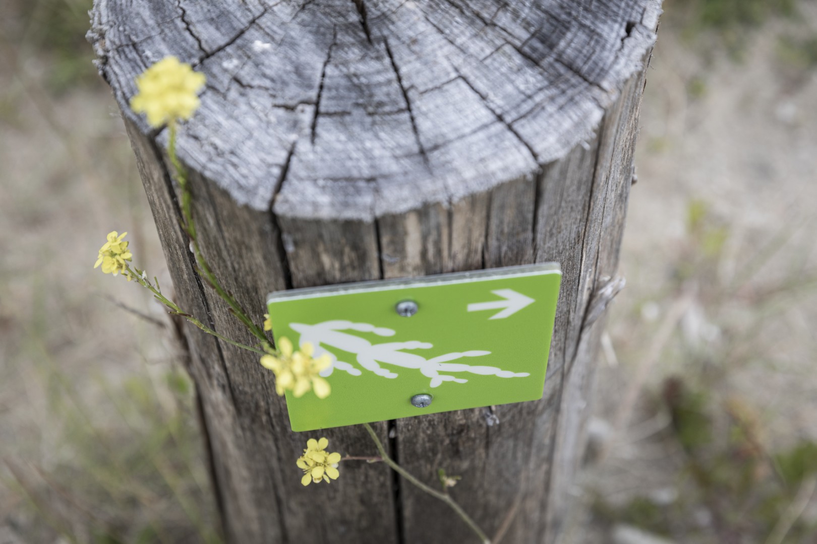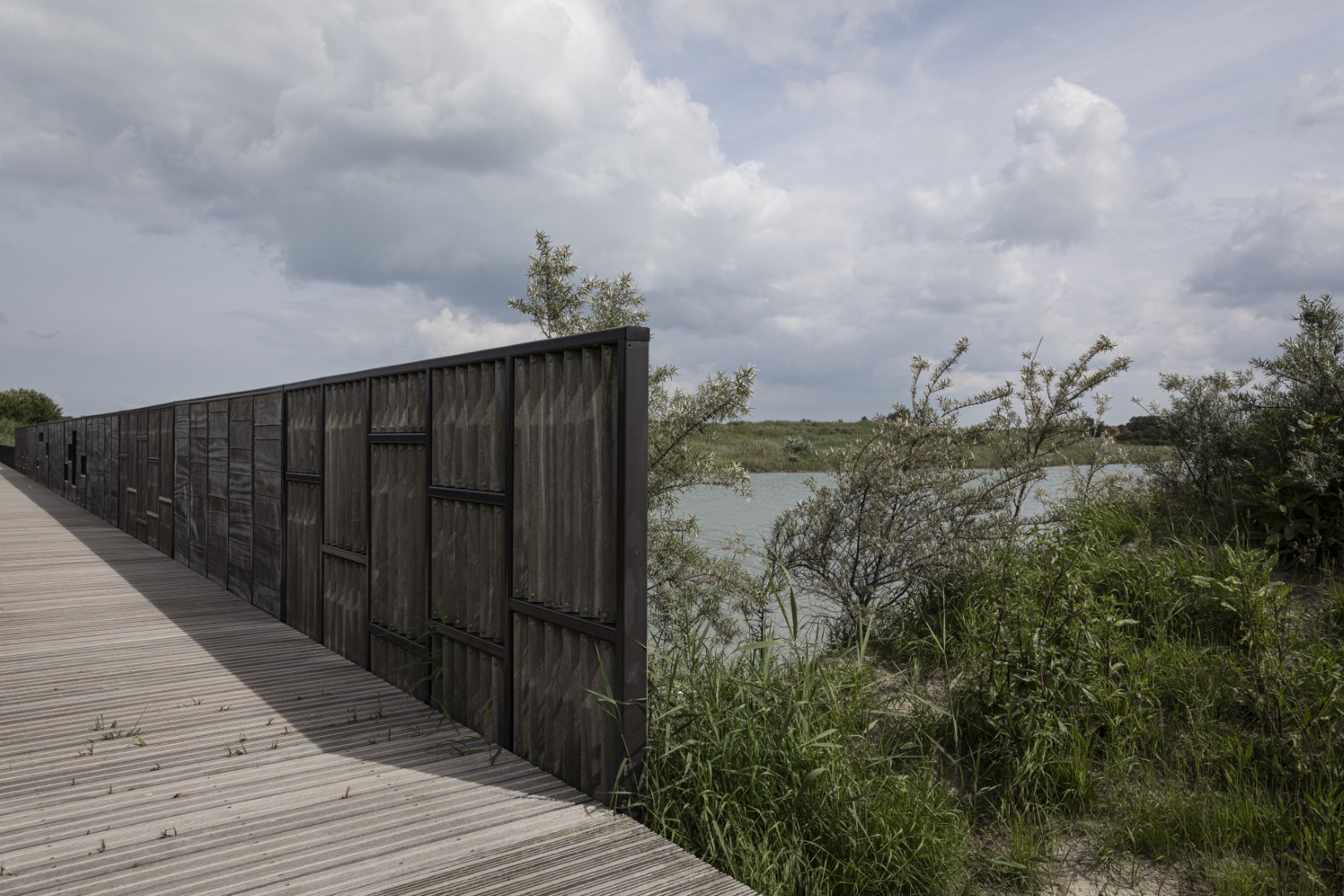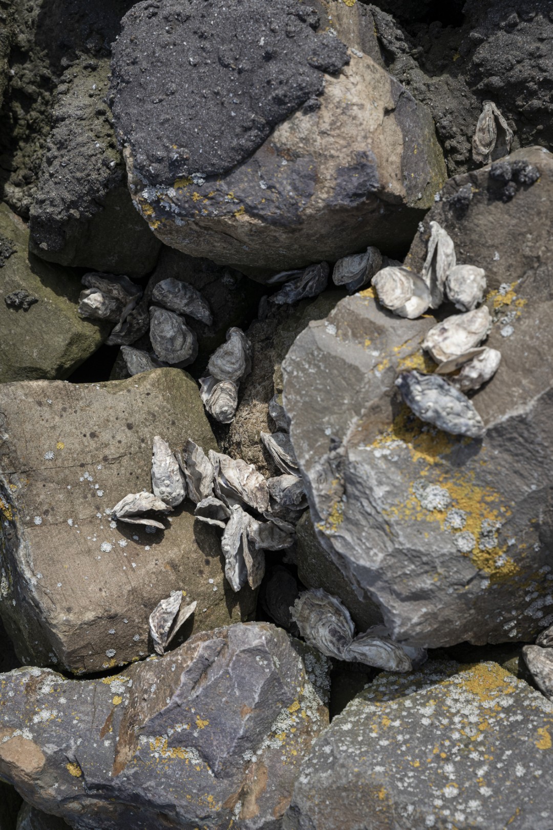In de centrale waterplas hangen oestermandjes aan lange lijnen. Een waterrad op zonne-energie voert zuurstofrijk water aan. De opstelling test een nieuwe teeltmethode uit. We volgen de 4,5 km lange Zeekraalroute, die door de slikken en schorren leidt. Zo kan je alle fasen in het samenspel tussen en zeewater en land beleven. Onzichtbare leeuweriken jubelen hoog aan de hemel. Steltlopers zoeken op de tast naar voedsel in het slik. Met de verrekijker speuren we naar lepelaars. In het hoge riet verschuilen zich zangvogeltjes. Grondbroeders maken hun nesten op kunstmatige eilandjes in de waterplas. ‘Meeuwen en sternen nestelen er samen’, vertelt Dilia. ‘De zwartkopmeeuw beschermt de stern. Let op, dat is geen kokmeeuw. Die heeft een bruine kop.’