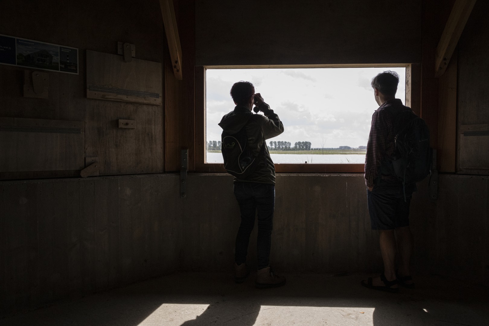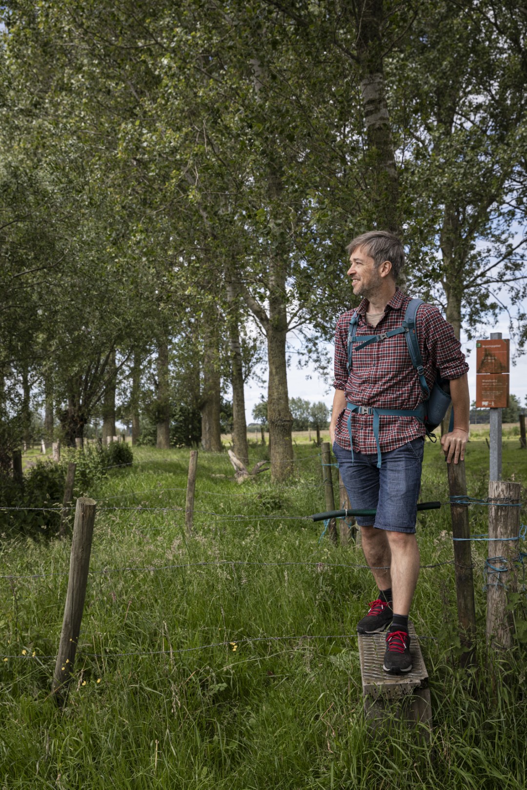 Na het ontbijt maak ik met fotografe Siska een ommetje van vijf kilometer naar De Blikken. ‘Leuk dat je hier met kinderen direct de natuur in kan,’ zegt ze. Voor kinderen die hier opgroeien, heeft de omgeving nadelen: hun vriendjes wonen niet in de buurt. Om de waterplassen van De Blikken te bereiken, moet je door een weiland. In de vogelkijkhut horen we koeien in de plas plonzen. Ze klinken als waterbuffels in de Pantanal, maar als ze in beeld komen, zijn het gewoon koeien van bij ons.