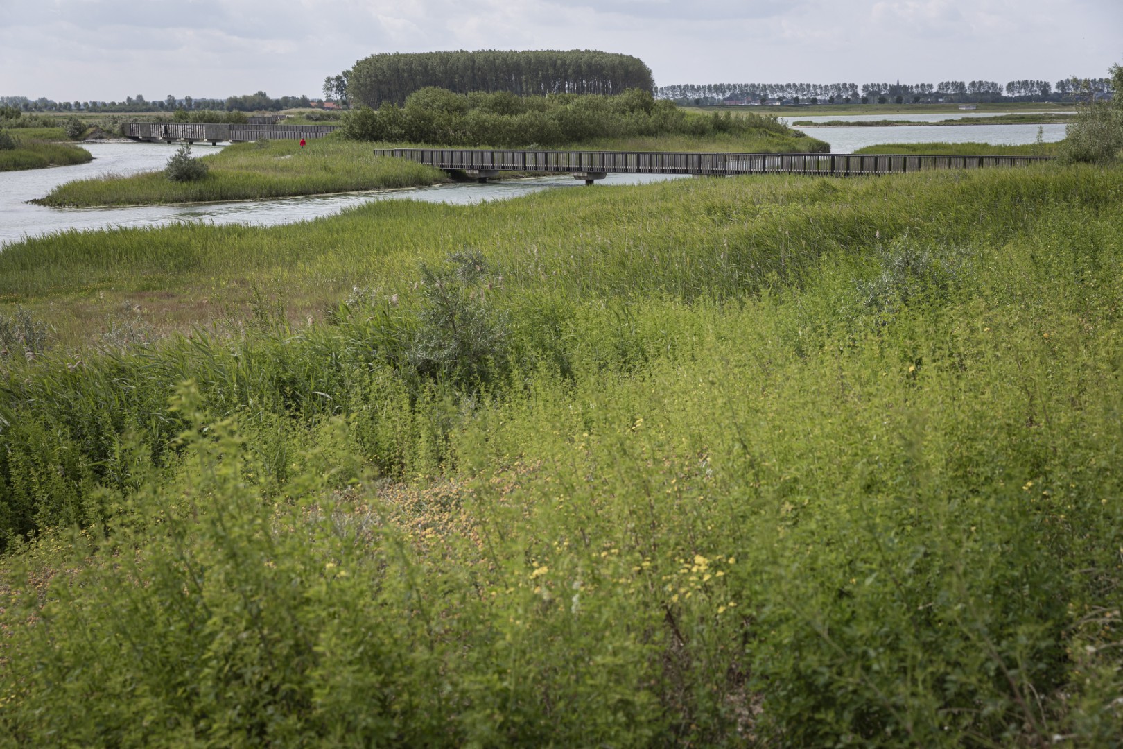 Eigenlijk vertegenwoordigen de Waterdunen de actuele visie op de Deltawerken. De dijk blokkeert de zee niet, maar laat ze gecontroleerd het land instromen. De getijdenduiker, een slimme inwateringssluis naast de gietijzeren vuurtoren van Breskens, maakt dat mogelijk. In een gebied van 350 hectare tussen een camping en een vakantiepark is op vijf jaar tijd verrassend wilde natuur ontstaan. ‘Alles wat je in zee vindt, vind je hier ook’, zegt Dilia, terwijl ze een krabbenschildje opraapt.