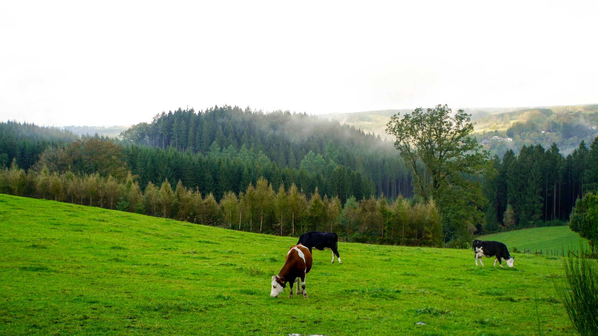 Later op de dag laat ik het meer achter me en opent het landschap zich weer. Velden strekken zich uit, koeien grazen in de zon, en de paden worden breder. Asfalt komt weer in zicht, een teken dat de reis zijn einde nadert. De wereld versnelt: huizen, auto's, winkels die hun deuren openen. Een korte wandeling naar het centrum leidt me naar de Venntrilogie-poort in Bütgenbach, het officiële eindpunt van mijn avontuur.