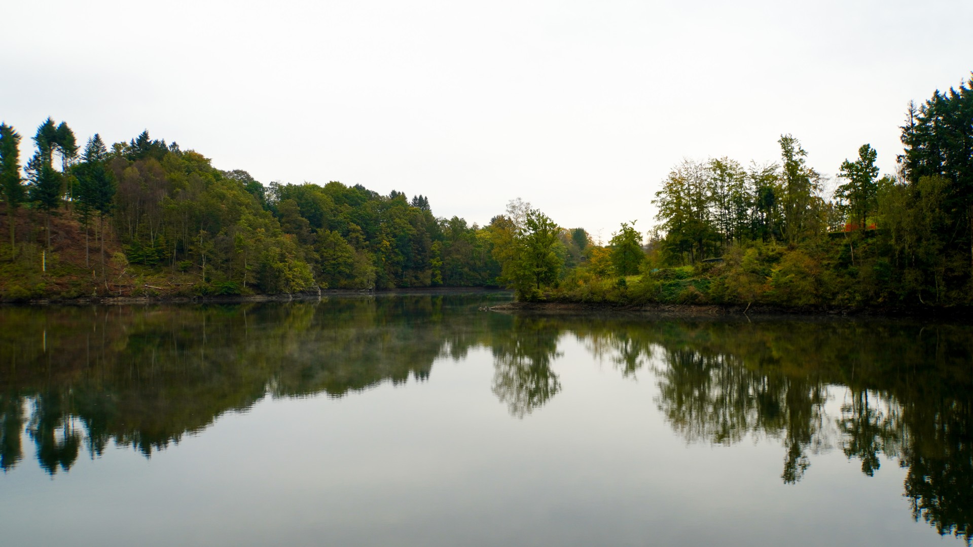 De laatste dag breekt aan, en het lijkt erop dat ik deze tocht droog en misschien zelfs zonnig zal beëindigen. Terwijl ik mijn ontbijt geniet, leer ik het Franse woord voor een zachtgekookt eitje – un œuf à la coque, en na een korte backtrack naar waar het pad gisteren eindigde, sta ik aan het begin van mijn laatste etappe. Het is vroeg; mist hangt laag over het meer van Robertville, en de spinnenwebben die over het pad liggen, verraden dat ik de eerste wandelaar ben. Mijn eerste stappen voelen als een zachte dans over de grond, de stilte is bijna magisch. Het uitzicht doet me denken aan Zweden, met een langgerekt meer omzoomd door bomen die in de herfstkleuren stralen.