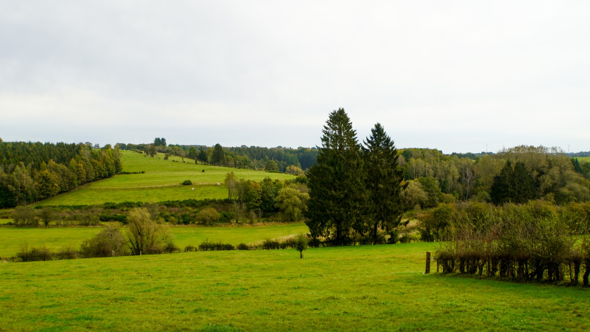 Aan het begin van dag twee voel ik de eerste dag nog in m’n benen zitten. Die voelen wat zwaarder aan, en zijn blij te weten dat de tweede dag een korter en makkelijker pad op de planning heeft staan. Zodra ik Eynatten verlaat, wandel ik opnieuw door de inmiddels vertrouwde poortjes die weiland na weiland met elkaar verbinden. De ochtend is fris en helder, en de vogels zijn al volop bezig met hun ontwaken: een orkest van tjilpende mezen, jubelende merels en het diepe geroffel van een specht ergens in de verte heet me welkom op deze tweede etape.